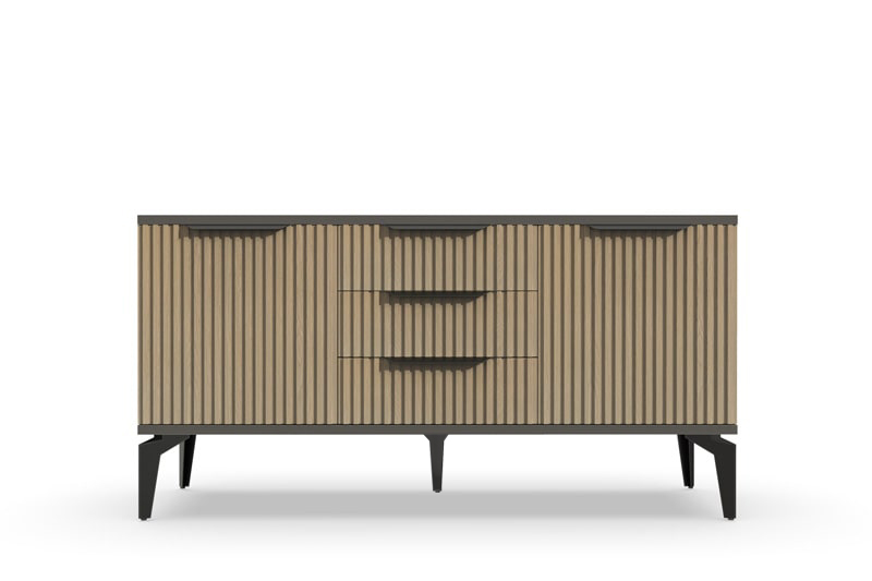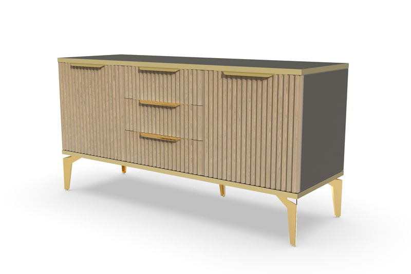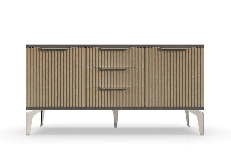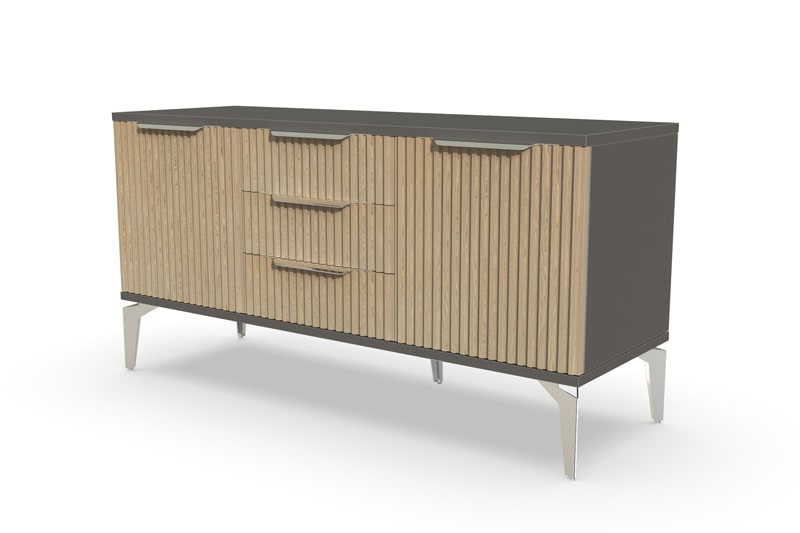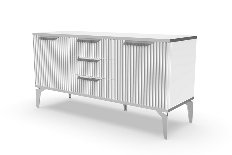 Тумба под ТВ Рейн от фабрики Geona - это красивое и функциональное решение для вашей гостиной. Её особенностью являются рифлёные поверхности, которые создают не только эффектный визуальный эффект, но и приятные тактильные ощущения.