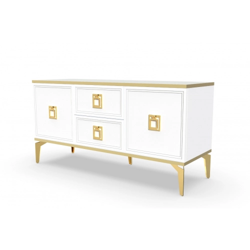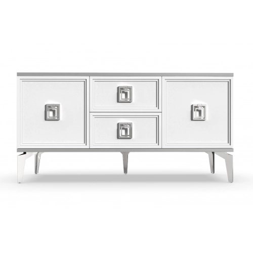 Тумба под ТВ Сириум от мебельной фабрики Geona - это стильное и функциональное решение для вашего гостиного помещения. Она может быть изготовлена из разных цветов ПВХ шпон, что позволяет подобрать тумбу под любой интерьер. На ней также присутствует фрезеровка, которая придает дополнительный шик дизайну.