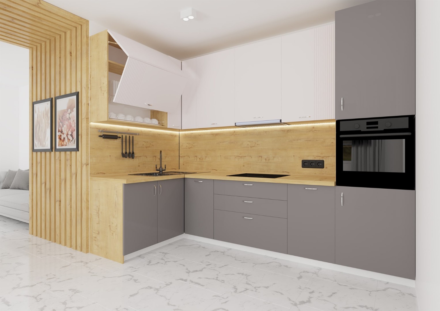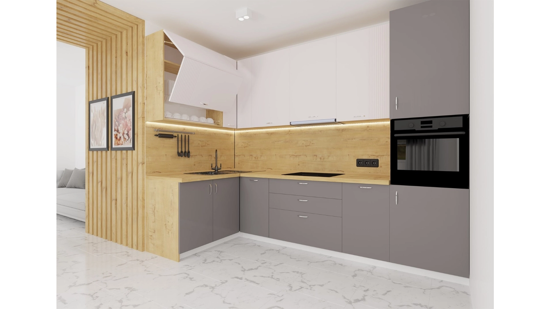 Кухонный гарнитур "Флет, Гладь" от GEONA представляет собой идеальное сочетание элегантности и практичности. Каждый элемент этой коллекции разработан с использованием передовых технологий и изготовлен из высококачественных материалов. Мы стремимся предложить вам гарнитур, который не только впечатлит своим современным дизайном, но и обеспечит удобство и функциональность в использовании.