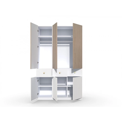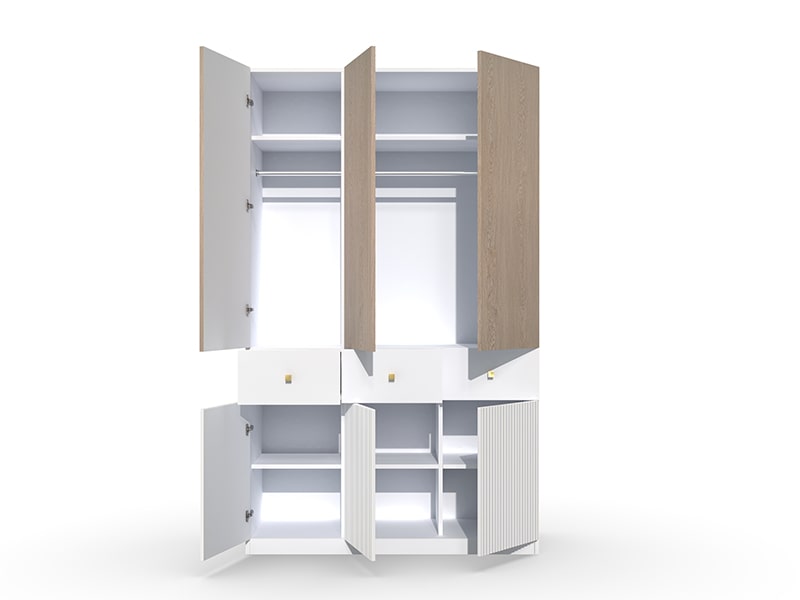 Шкаф "Темпо" предлагает вместительное пространство для хранения вашей одежды, аксессуаров и других предметов. Две створки шкафа обеспечивают удобный доступ к вещам и позволяют организовать их по категориям. Внутреннее пространство шкафа можно настроить с помощью полок, штанги для вешалок и других элементов, чтобы максимально удовлетворить ваши потребности в хранении.
