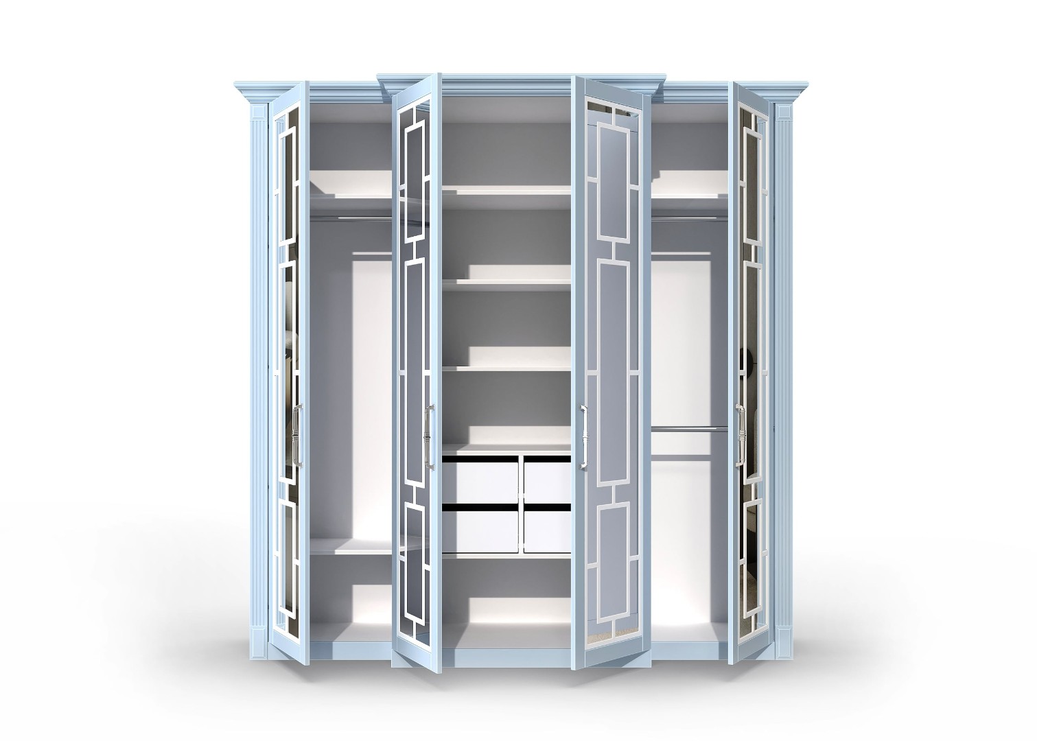 Материалы: Мы предлагаем шкафы Микс в двух вариантах покрытия: эмали и ПВХ. Эмаль обладает прочностью и блеском, подчеркивая детали декоративной решетки и добавляя роскошь в интерьер. ПВХ покрытие обеспечивает прочность и долговечность шкафа, а также защищает его от повреждений и царапин.