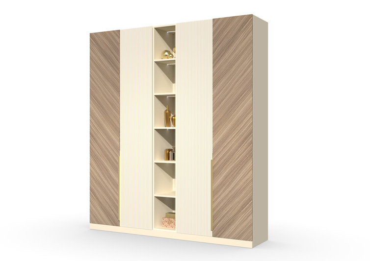 Шкаф 4-х створчатый Шале от фабрики Geona - это элегантное и практичное решение для хранения вещей в вашей спальне или гостиной. Он оснащен выдвижными ящиками и имеет эффектную отделку в диагональном направлении текстуры, что придает ему изысканный и стильный вид.