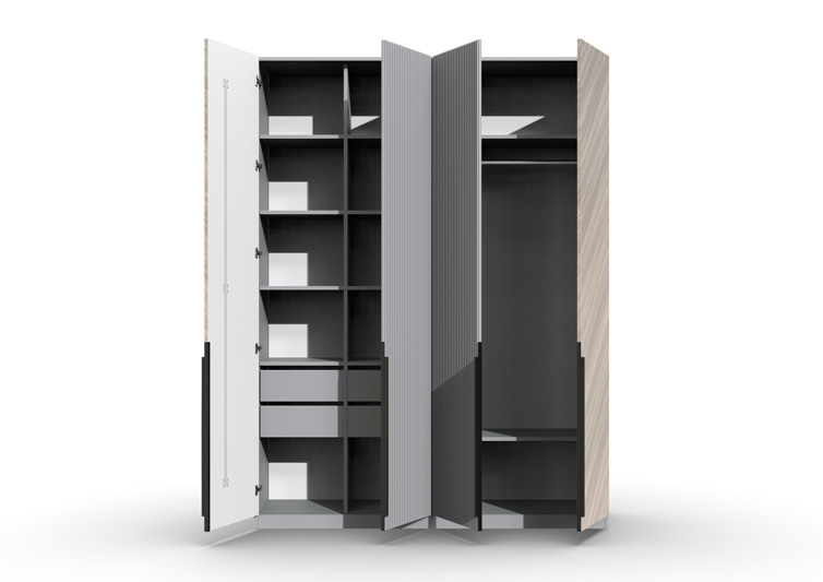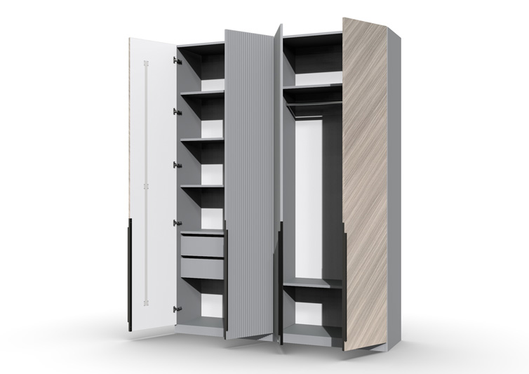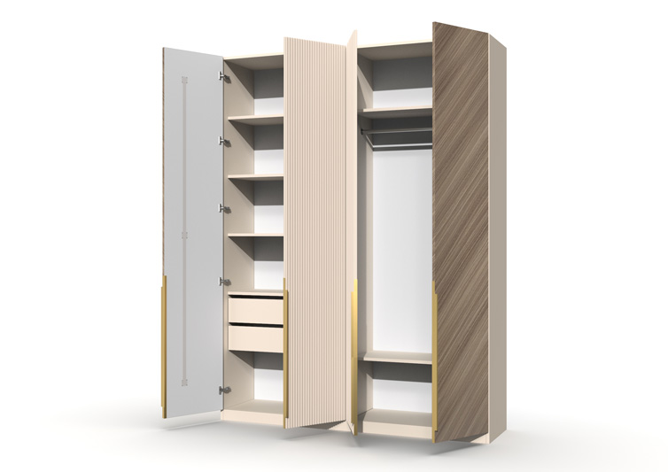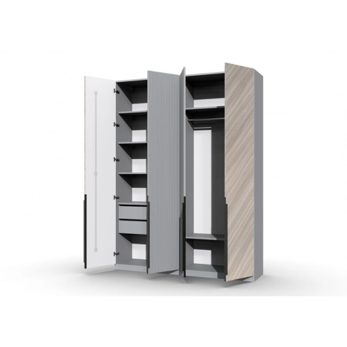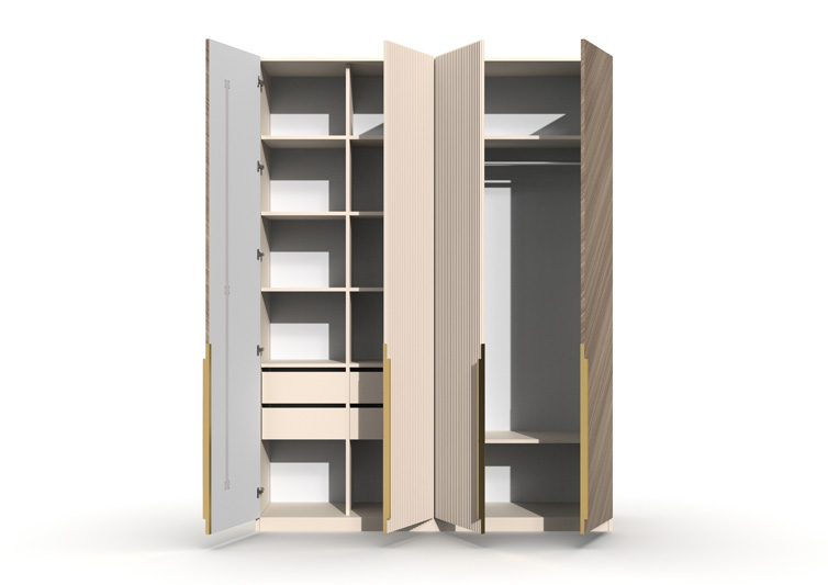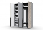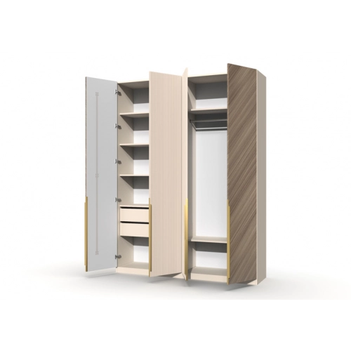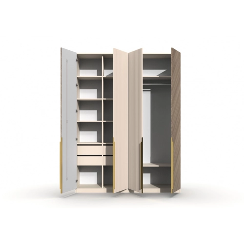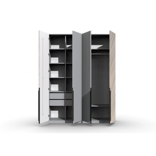 Шкаф 4-х створчатый Шале от фабрики Geona - это элегантное и практичное решение для хранения вещей в вашей спальне или гостиной. Он оснащен выдвижными ящиками и имеет эффектную отделку в диагональном направлении текстуры, что придает ему изысканный и стильный вид.