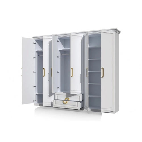 Основным преимуществом шкафа "Лозанна" являются его ящики, которые обеспечивают удобство и дополнительное пространство для хранения ваших вещей. Шесть створок позволяют организовать хранение ваших вещей легко и удобно. Ящики легко выдвигаются, что обеспечивает удобный доступ к вашим вещам, а также упорядочивает их хранение.
