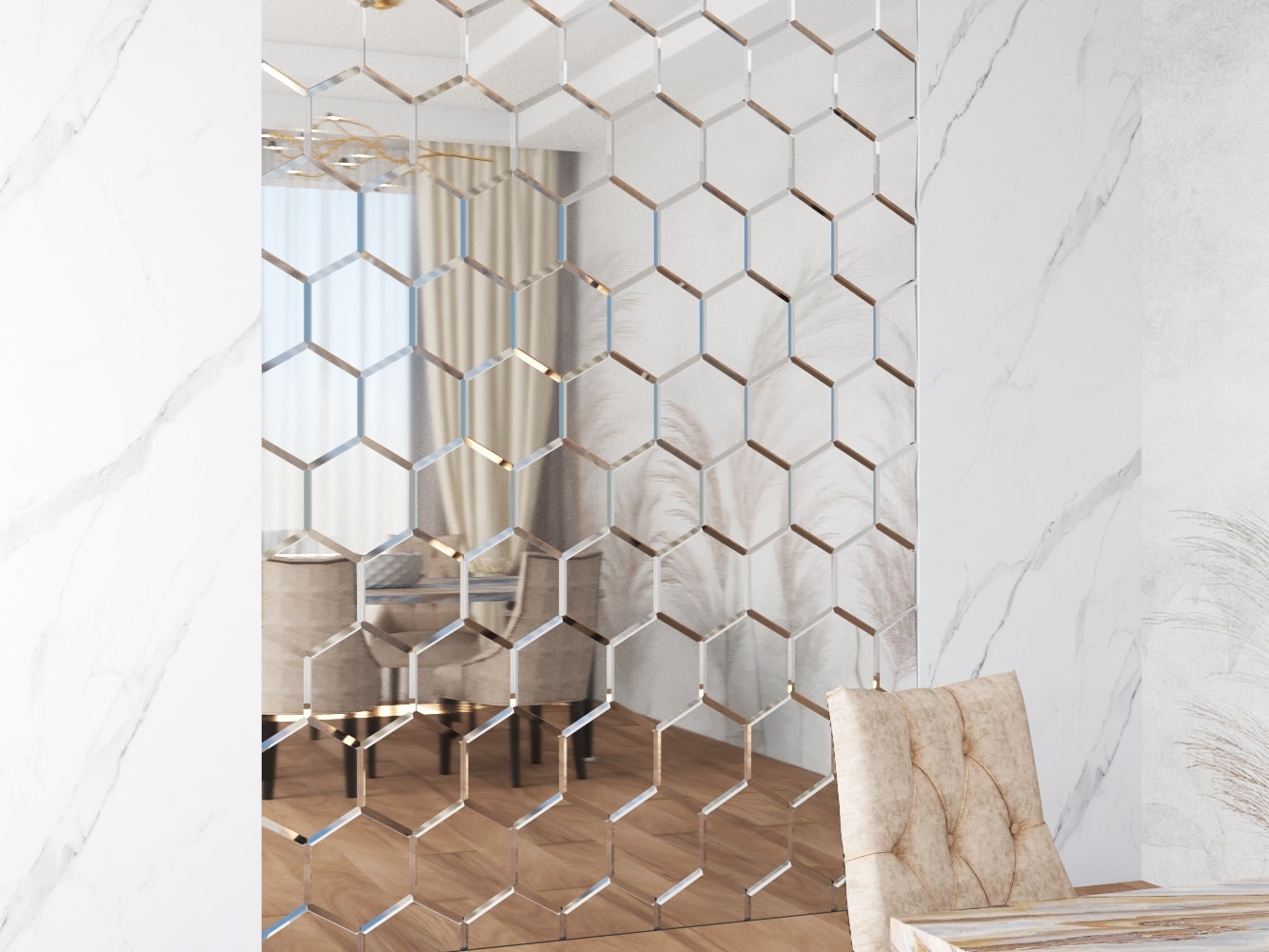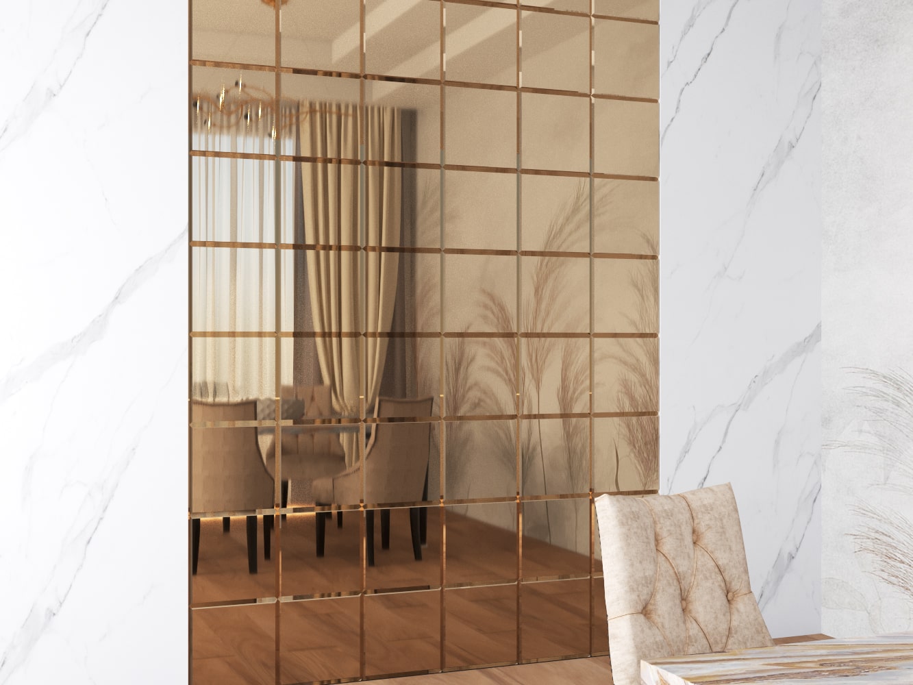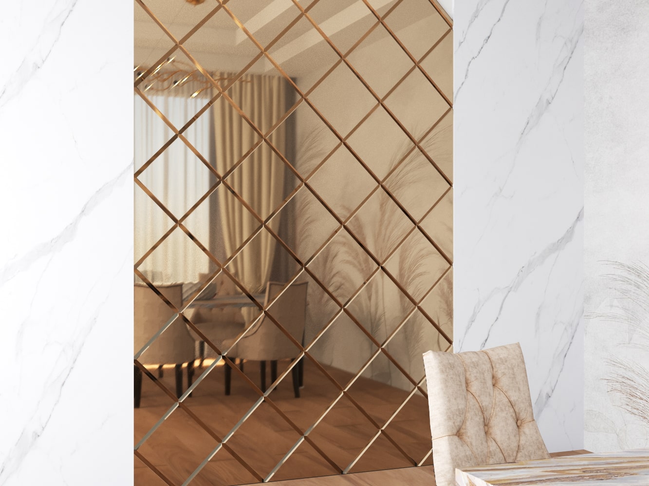 Фабрика «Геона» предлагает следующие зеркальные элементы – квадрат, кирпич, соты, ромбы в цветах – графит, бронза, серебро - для создания эксклюзивного зеркального панно, которое может перерасти в оформление целой стены, в том числе и для визуальной коррекции пространства.